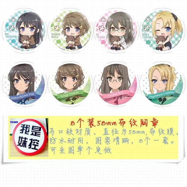 青春猪头少年不会梦到兔女郎学姐 动漫马口铁徽章胸章圆形布纹胸针 8款一套 58MM