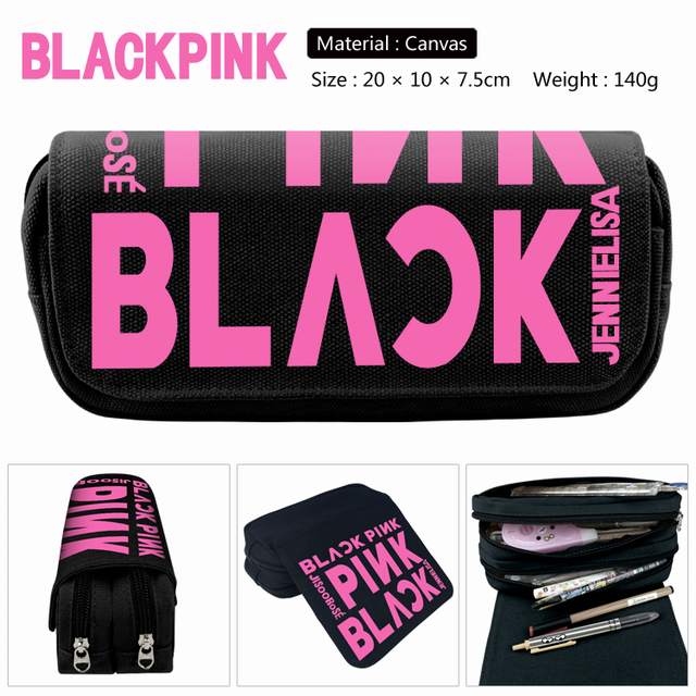 Black Pink韩国明星 Jennie Lisa 动漫双层多功能大容量帆布学生笔袋文具盒钱包 20X10X7.5CM 140G