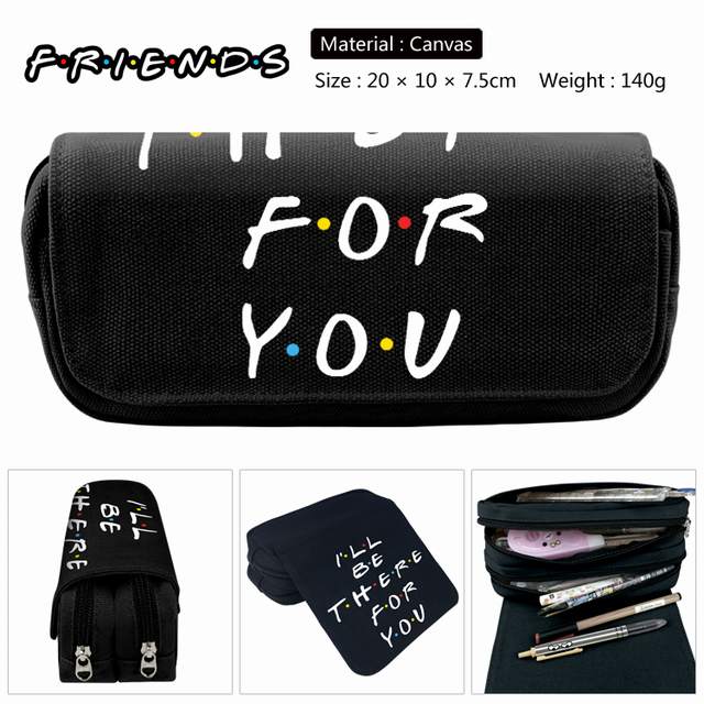老友记 英文款-1 黑色 动漫双层多功能大容量帆布学生笔袋文具盒钱包 20X10X7.5CM 140G