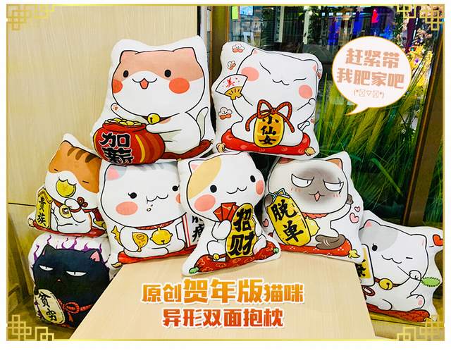 原创新年猫咪抱枕 加薪 双面异形抱枕靠枕 约35X45CM