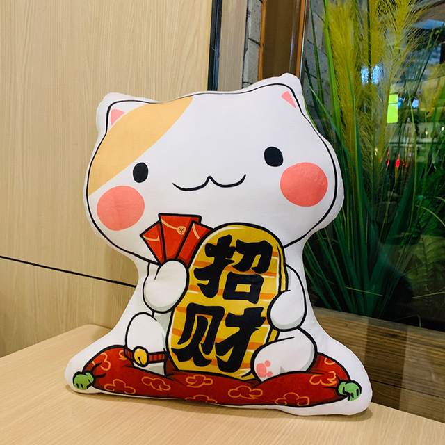 原创新年猫咪抱枕 招财 双面异形抱枕靠枕 约35X45CM