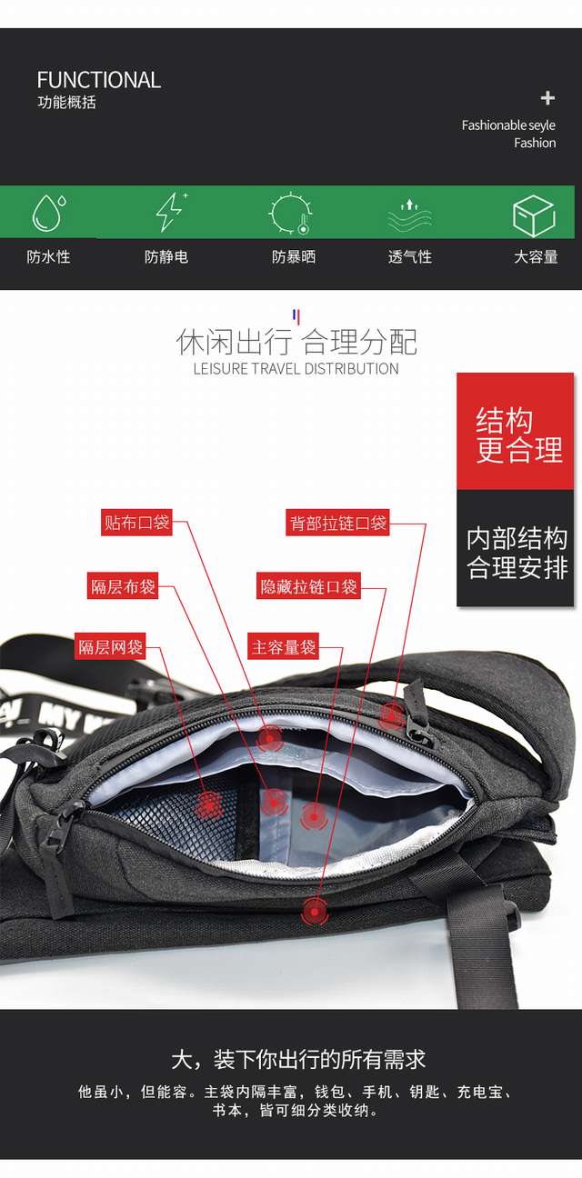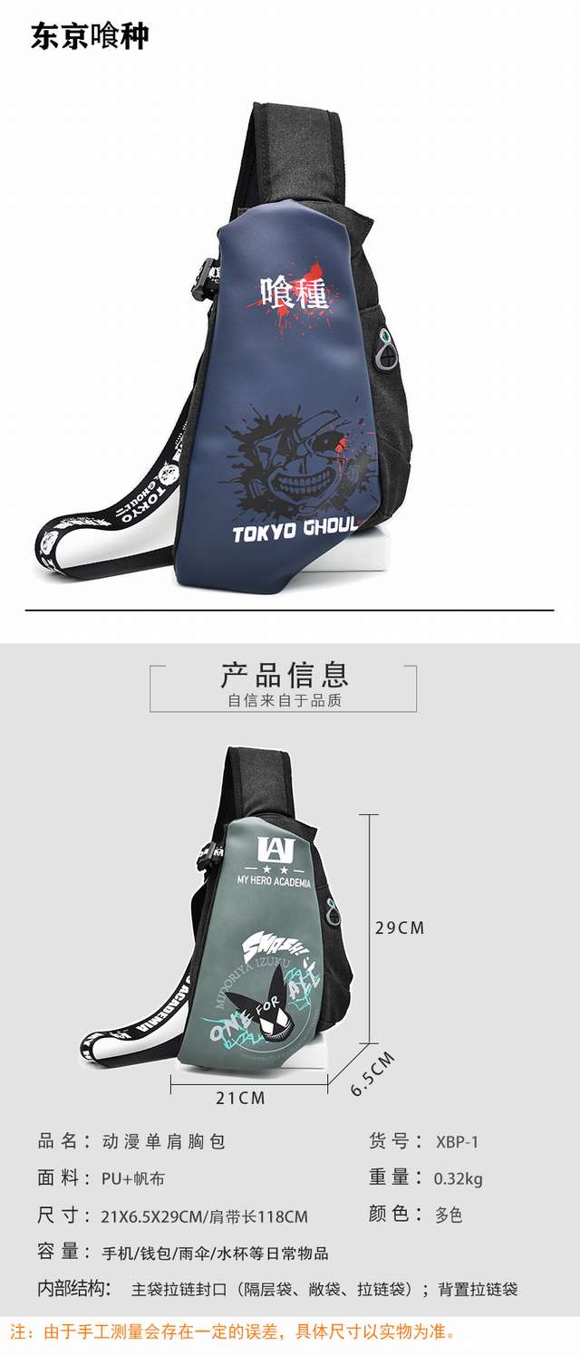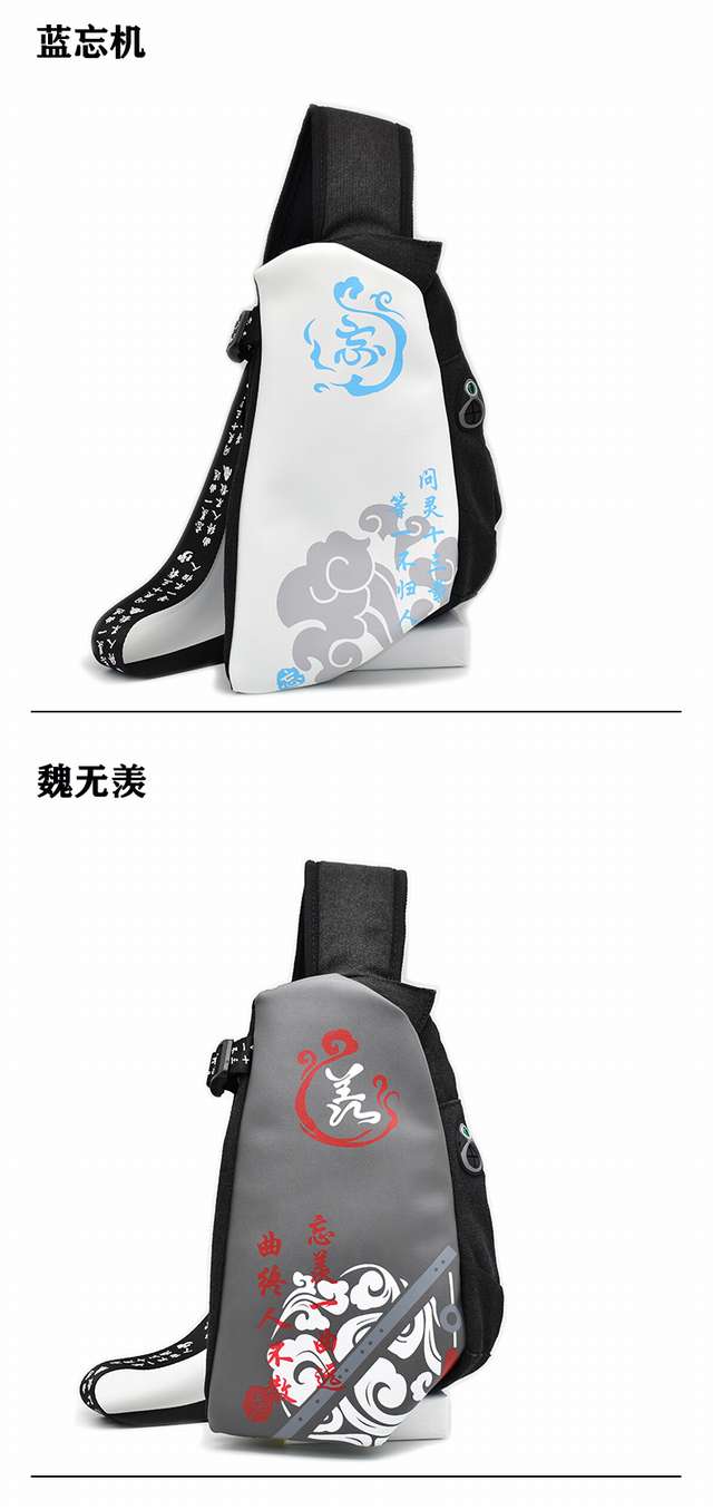 魔道祖师 蓝忘机 动漫单肩胸包PU+帆布腰包 21X6.5X29CM 肩带长118CM 0.32KG