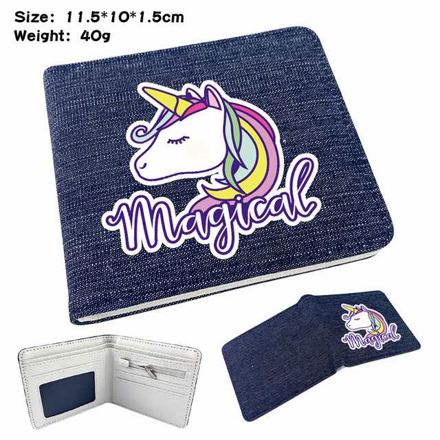 独角兽 卡通小马宝莉 动漫数码印牛仔布彩图二折钱包 11.5X10X1.5CM 40G