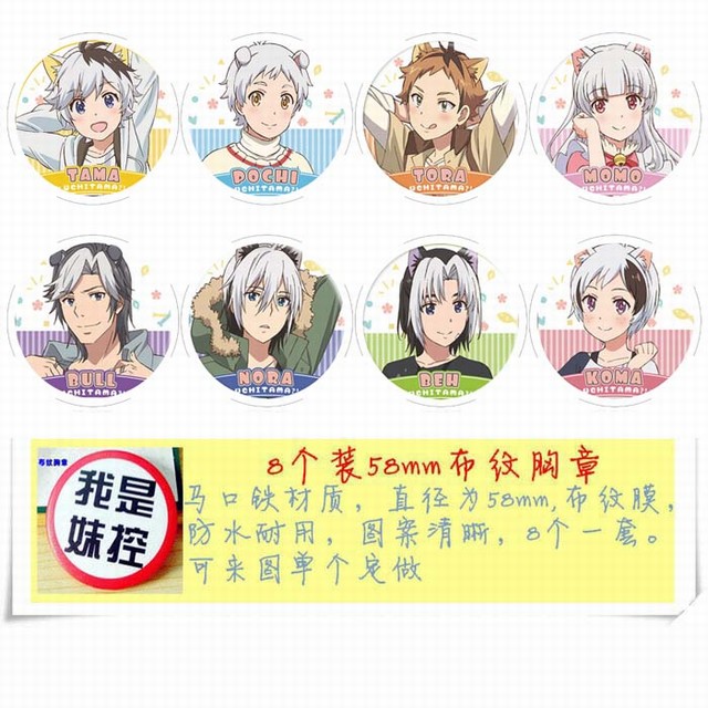 家有圆圆 动漫马口铁徽章胸章圆形布纹胸针 8款一套 58MM