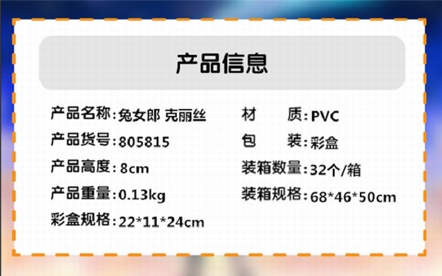 兔女郎 克丽丝 盒装手办摆件模型 8CM 0.13KG 彩盒尺寸:22X11X24CM 一箱32个