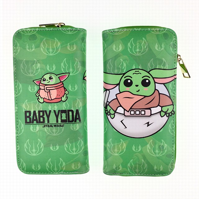 星球大战 尤达 绿色 全彩PU斜纹二折拉链长款钱包