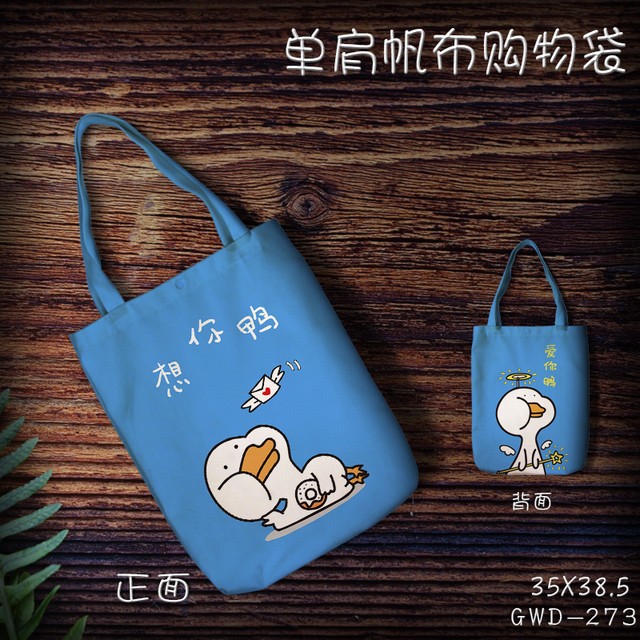 GWD273-抖音鸭子 表情单肩帆布购物袋 35X38.5CM