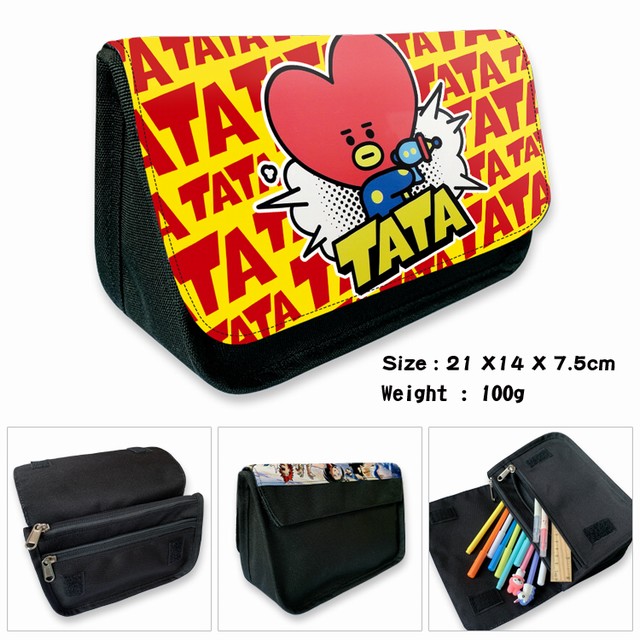 防弹少年团BTS-4B 动漫双层多功能大容量帆布学生笔袋文具盒钱包 21X14X7.5CM 100G