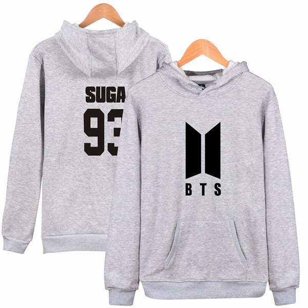 BTS2017新专辑LOGO标志灰色长袖加绒抓绒料带帽子头套卫衣SUGA-2件起批-M--L--XL--XXL--XXXL