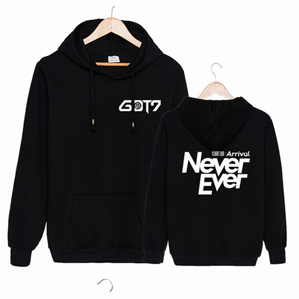 GOT7LOGO标志黑色长袖抓绒料带帽子头套卫衣2件起批-M--L--XL--XXL--XXX