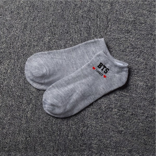 BTS 防弹少年团 印花浅口短袜灰色袜子 18CM 17G 5双起批