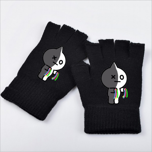 BTS 防弹少年团 BT21饼干 印花黑色半指手套 18X9.5CM 32G 5双起批