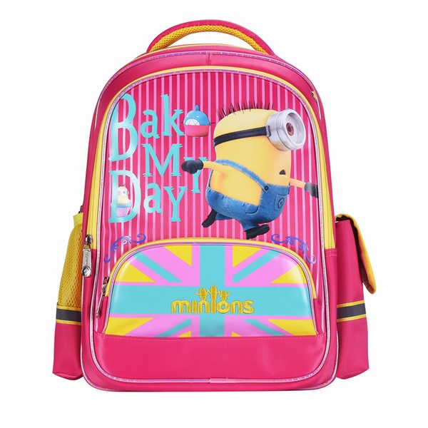 正版神偷奶爸小黄人小米字书包(玫红色)双肩背包NO-XHRLC013C(28X14X40CM)